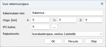 Syötä tontin origo. IFC-kulman voi osoittaa painamalla