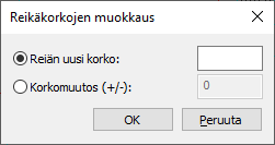 Korkomuutos (+/-) – Syötä arvo, jolla haluat kasvattaa tai pienentää reikien korkoa. Kaikki reiät siirtyvät arvon verran.