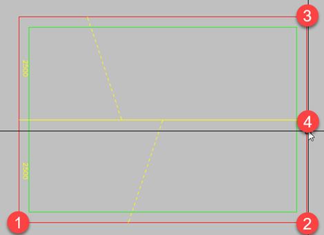 Osoita katon ensimmäinen nurkkapiste (kuvassa nro 1).