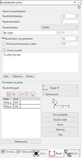 Building-sovellus > Rakenne-välilehti > Raudoitteet-ryhmä > Raudoite, BUILDINGRAUDOITE |