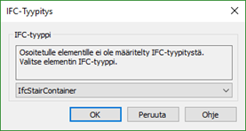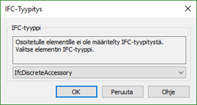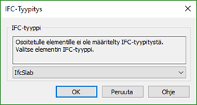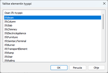 Valitse osalle sopiva IFC-tyyppi avautuvasta valikosta. Katso apuja taulukosta.