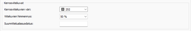 Asetusten Yleiset-välilehdellä voidaan määritellä kerrosviitekuvien tuontiväri ja -himmennys. Samalla voidaan määritellä tuodaanko viitekuviksi jokin tietty suunnitteluala (esim. ARK tai LVIS), jos ne on kerrosasetuksiin määritelty.