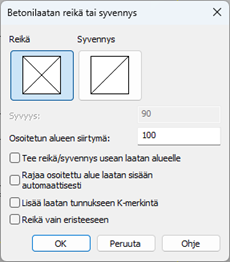 1. Valitse dialogissa piirretäänkö reikää vai syvennystä. Syötä syvennykselle syvyys.