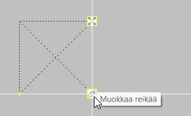 Tällä toiminnolla voit muokata reikätoiminnolla piirrettyjä reikä-, syvennys- ja ulkonemamerkintöjä. Toiminto päivittää elementin tiedot muokatunlaisiksi ja heijastaa muutokset elementin 3D-varaukselle (jos sellainen on ollut kuvassa jo aikaisemmin). Voit myös lisätä toiminnolla 3D-varauksen reikäelementille.