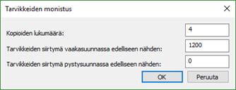 Valitse kopioiden lukumäärä (monistettavaa tarviketta ei lasketa).