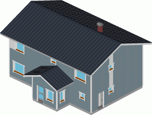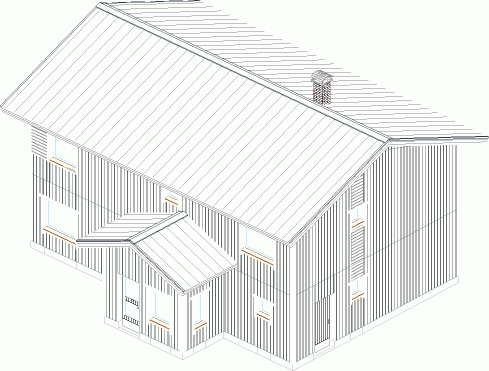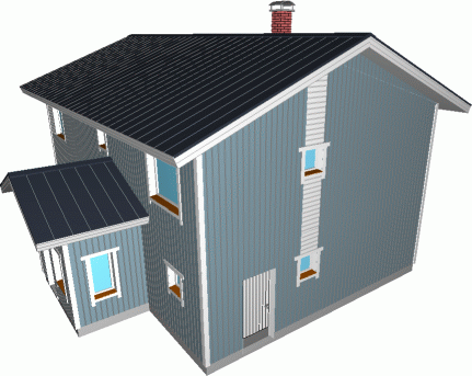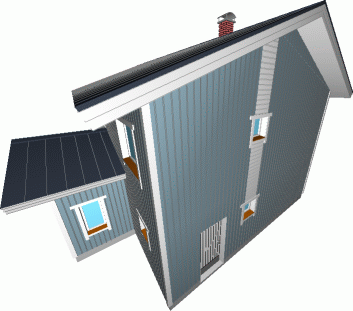 Perusvarjostustila 3D-mallin tutkimista varten. Tässä tilassa voidaan kytkeä päälle perspektiiviesitys. Perspektiivi voidaan kytkeä päälle/pois painikkeella Perspektiivi päälle/pois.