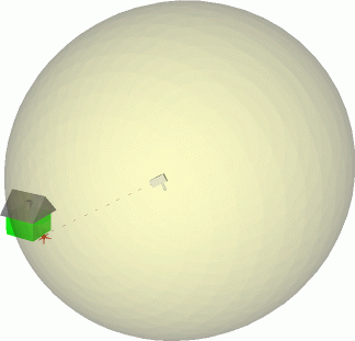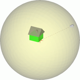 Tällöin kamera sijaitsee äärettömän kaukana katselupisteestä (punainen tähti). Tällöin kuvan lähestyminen voidaan ajatella zoomaamisena kohti kohdepistettä.