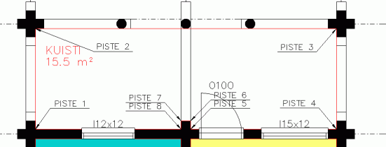Osoita ensimmäisen tilan (sauna) ensimmäinen nurkkapiste (piste 1).