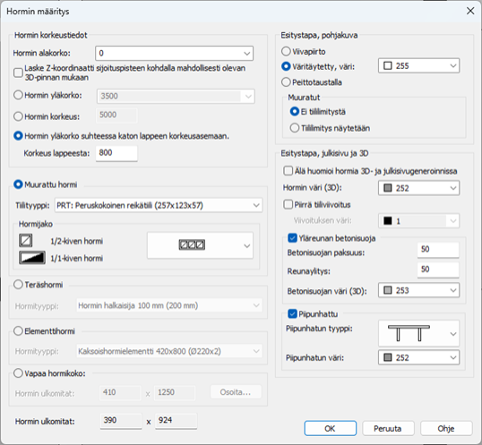 Lisätään pohjakuvaan hormi ja määritellään sille tiedot julkisivugenerointia varten.
