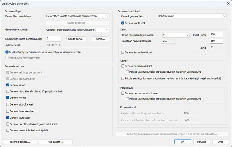 2. Valitse elementtien valintatavaksi osoittamalla pohjakuvasta. Varmista, että generoitaviksi on valittuna kaikki julkisivukuvannot.