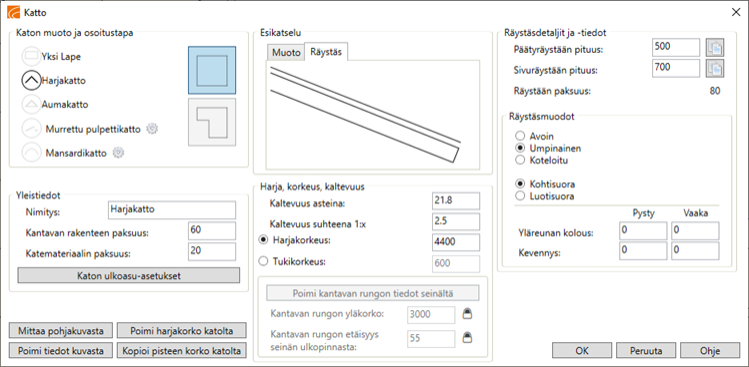 Julkisivuja varten piirretään pohjakuvaan katto.