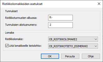 Varmista, että ristikkolomakkeen asetukset ovat kunnossa.