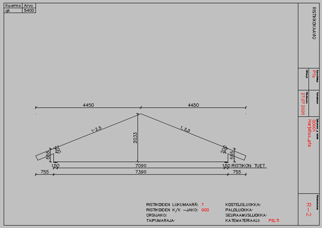Tehdään aluksi ristikko R-1:n tilauskaavio käyttäen samaa toimintoa, jolla ristikot piirrettiin pohjakuvaan. Toiminnolla voidaan tehdä lomake myös ilman, että ristikoita piirrettäisiin pohjaan.