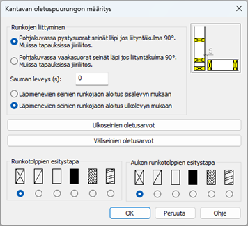 Varmista, että kohdassa Nurkkien oletusyhdistämistapa valinnaksi on asetettu Seinän rakennekerrokset puskuliitoksella.