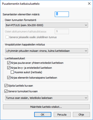 1. Valitse puuelementin lomake ja valitse (Tee leikkaus puuelementistä) -toiminto.