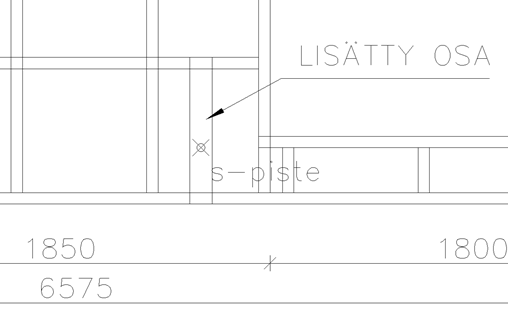 4. Osoita osan alkupiste niin, että varausmerkintä jää osan keskelle. Loppupisteen esityksessä voidaan piirrettävän osan puolta vaihtaa avainsanan Vaihda avulla.