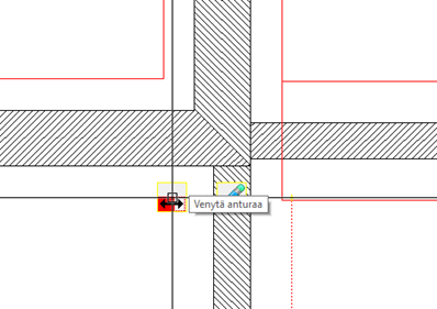 Koska toiminto piirtää anturoiden viivoja osin päällekkäin pitää anturoita hieman korjata.