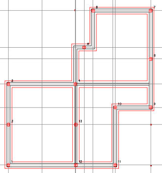 Kun anturat sekä perusmuurit on piirretty pohjakuvaan, voidaan sijoittaa paalut. Ennen sijoitusta on jälleen hyvä lisätä apugeometriaa paalujen sijoittamisen avustamiseksi. Myös tässä vaiheessa tarpeettomat seinärakenteet voidaan sammuttaa pois.