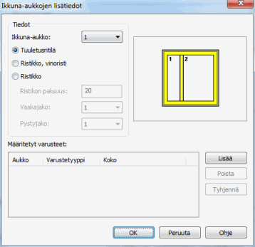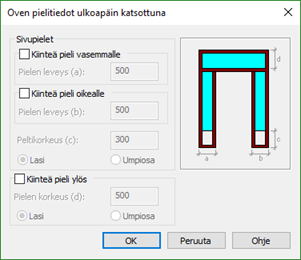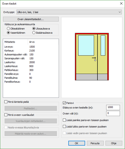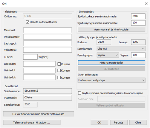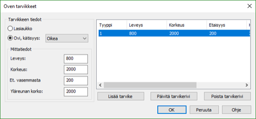 Ikkunan ja oven tietojen määrittely