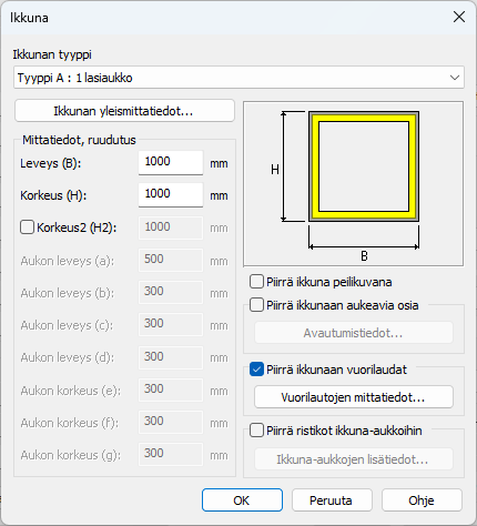 4. Valitse piirretäänkö ikkuna peilikuvana. Voidaan käyttää esim. tuuletusikkunallisten ikkunoiden kanssa.