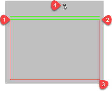 Näytä muodostuneesta lappeesta harjalinja. Piste on osoitettu syntyneen lappeen ulkopuolelta, jolloin räystäspituus lisätään lappeen kokoon.