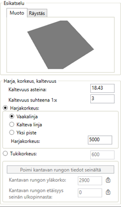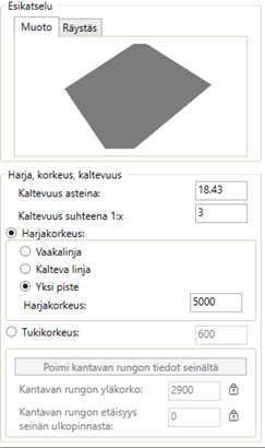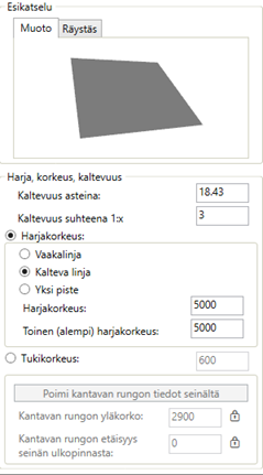 Harjakorko lasketaan katon piirtämisen jälkeen ja on muokattavissa myöhemmin.