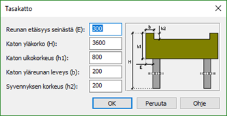 Tällä toiminnolla määritetään tasakaton reunaviiva pohjakuvaan julkisivun generointia varten.