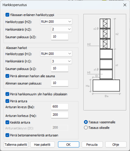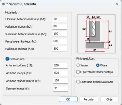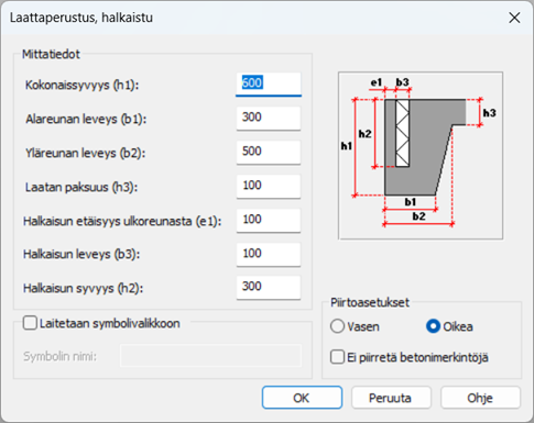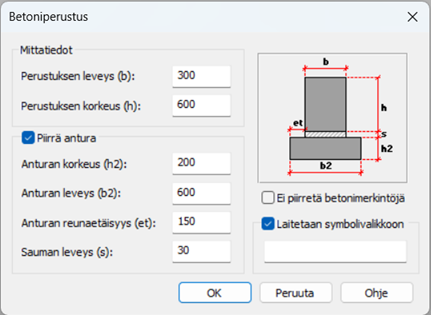 Näillä toiminnoilla piirretään perustusleikkaussymboliikkaa parametrisesti.
