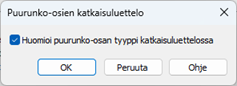 Puurunko-osien katkaisuluettelon asetuksissa voidaan valita, huomioidaanko tyyppi.