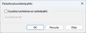 Valitse suoritetaanko suodatus luettelointikommentin perusteella. Syötä suodatusavain. Avain voi sisältää jokerimerkkejä (esimerkiksi *).
