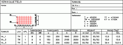 Tällä toiminnolla generoidaan raudoiteverkkoluettelo kuvassa olevista verkoista.