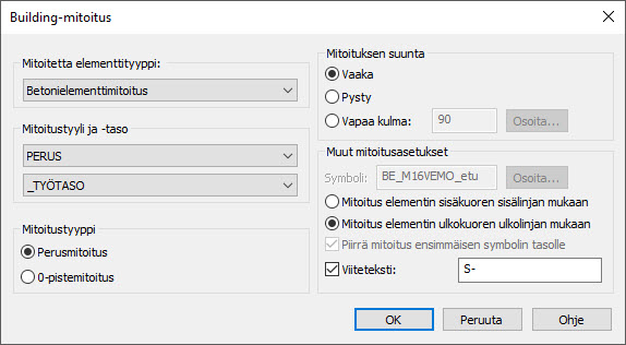 Elementtejä ja sokkelipalkkeja mitoitettaessa valitse mitoitetaanko ulko- vai sisäkuoren mukaan.