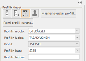 Valitse profiilin muoto (vain teräs- ja omilla profiileilla).