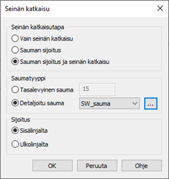 Huom! Seinään voidaan liittää aikaisemmin määritelty saumatyyppi, jossa on yhtä monta rakennekerrosta kuin nyt katkaistavassa seinässä.