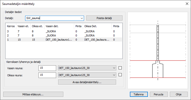 Lyhennyksen lisäksi saumaan voidaan lisätä kerroskohtaisia detaljeja. Detaljit määritetään erillisessä detaljimäärittelytoiminnossa. Detaljeja voidaan hyödyntää elementtisuunnittelussa (betoni ja CLT).