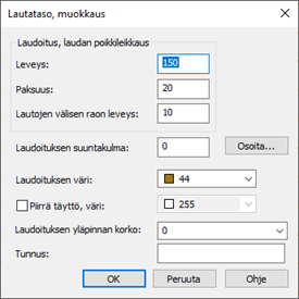 Lautatason viivoitusta, kulmaa, värejä sekä korkeusasemaa voidaan muokata jälkikäteen. Muokkaus tehdään dialogissa.