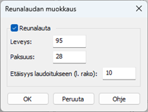 Valitse piirretäänkö reunalauta. Syötä reunalaudan mittatiedot.