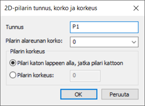Valitse pilarin korkeuden määräytymistapa. Syötä tarvittaessa pilarin kiinteä korkeus.