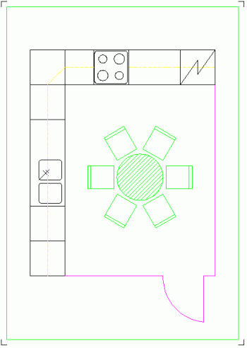 In this exercise you draw step by step a floor plan of a kitchen and get familiar with the most common drawing and editing features of CADMATIC. As the drawing goes along you will be using also object snap and ortho features. The kitchen floor plan will be drawn in natural scale and using various layers, colors and linetypes.