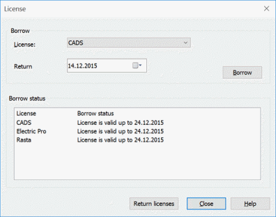 When using licenses provided by CADMATIC License Server, license(s) can be borrowed for defined time. During borrow time license can be used without a connection to license server.