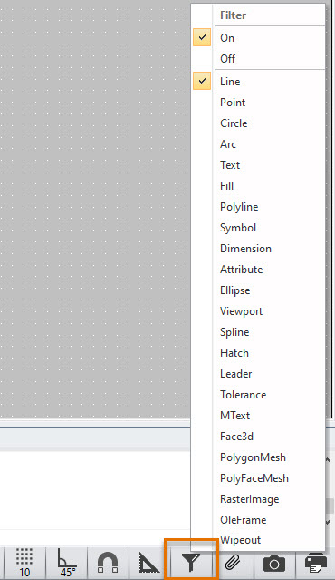Filter can be used to determine what type of objects can be selected from a drawing. Only object types that are active in a filter can be selected from a drawing.