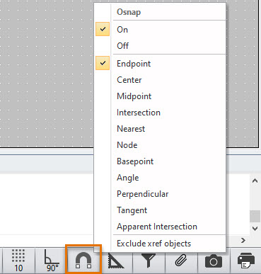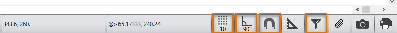 Snap, ortho, grid and filter are settings that define how certain object types behave in a drawing when they are selected, drawn or moved around.