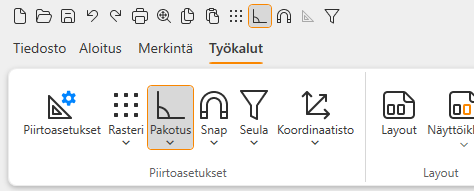 Työkalut-välilehti > Piirtoasetukset-ryhmä > Pakotus, PAKOTUS
