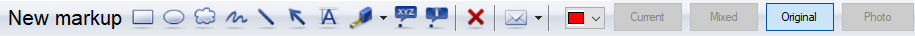 The Markup editor toolbar provides a set of drawing tools that allow you to highlight specific aspects of the model, using the color selected from the color field. You can add detailed model information by taking measurements, and adding coordinate, or attribute labels to objects.