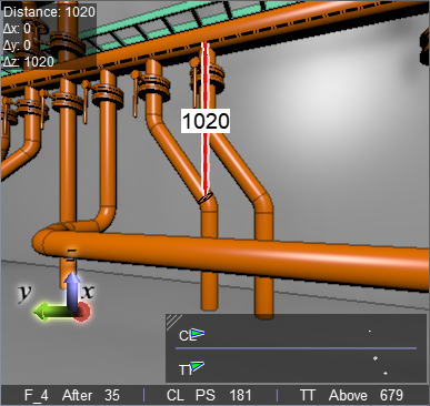 In this example, a pipe connection point is 1020 mm from the centerline of another pipe.