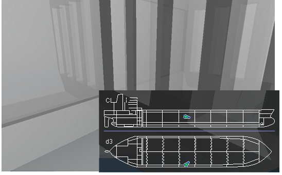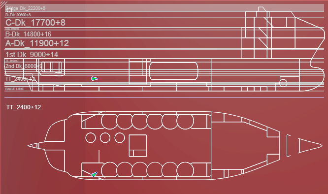In a ship design project the map is generated by cutting the chosen 3D Space objects from CL (or y = 0 if CL does not exist) to produce a profile picture, and by cutting along each deck level to generate deck layout maps. The nearest deck below the camera is shown as the top view.