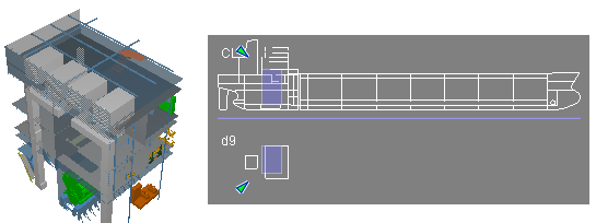 In CADMATIC Plant Modeller, designers can define 3D spaces that contain for example compartments, flooded volume, or blocks. These 3D spaces, together with planes defined by coordinate references, can be published to 3D models and shown in the 3D model viewer as a map of the model.