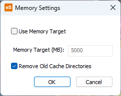 To activate the memory settings, click the Use Memory Target checkbox and define the memory target. The minimum value is 500 MB.