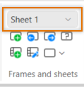 On the Single-line, Distribution Board, Schematics and Cabinet Layout tabs, you can move from one sheet to another by selecting the desired sheet from the drop-down menu in the Frames and sheets group: