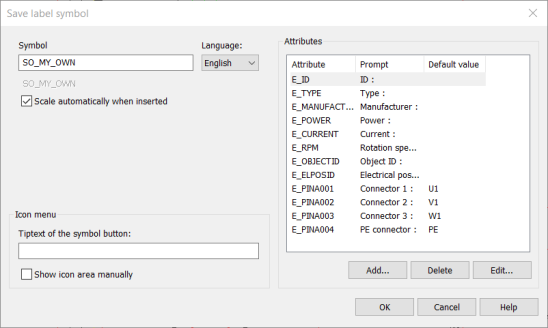 When creating your own label symbol, you can take advantage of the symbols delivered with the application. For example, you can easily import all the required attributes into your own drawing frame by exploding SPOH3V.